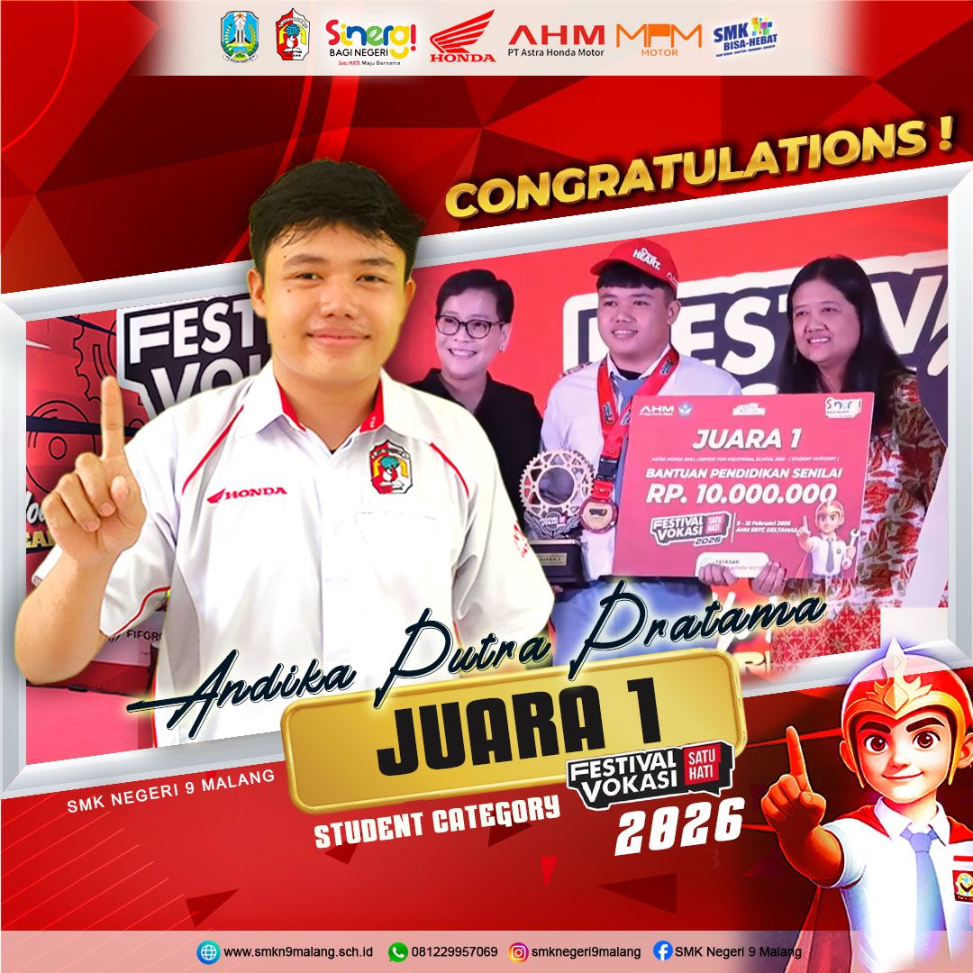 Selamat dan Sukses! Keluarga besar SMKN 9 Malang mengucapkan selamat dan apresiasi atas pencapaian 🏆 Juara 3 LKS DIKMEN Ko...