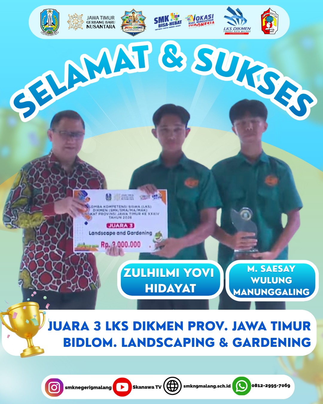Senyum bahagia dan rasa syukur terpancar dari keluarga besar SMKN 9 Malang. Hasil seleksi Seleksi Nasional Berdasarkan Pre...
