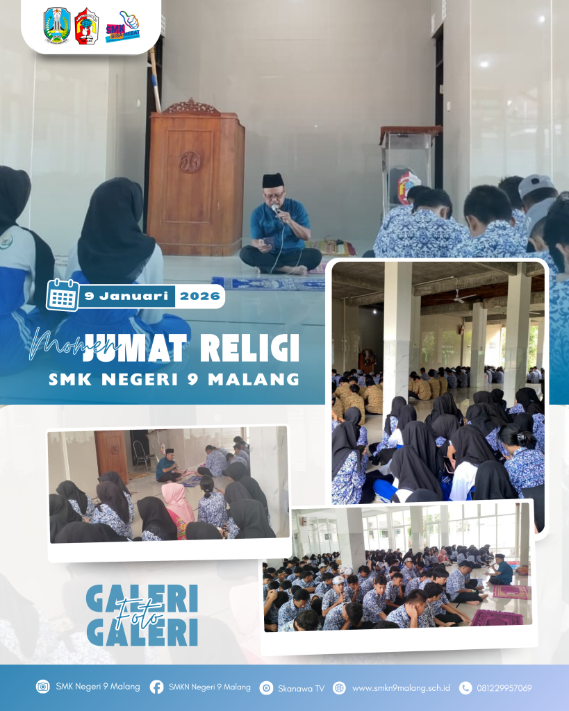 Mengawali hari dengan keberkahan melalui kegiatan rutin Jumat Religi. Kelas X melaksanakan pembacaan Surat Yasin dan Al-Waqiah secara tartil dan bersama di Masjid SMKN 9 Malang, sementara kelas XI dan XII melaksanakan pembacaan Surat Yasin dan Al-Waqiah secara tartil dan bersama di kelas masing-masing. Semoga kegiatan ini menumbuhkan keimanan, ketakwaan, serta membentuk karakter peserta didik […]