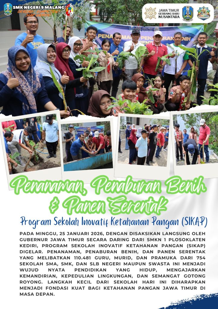 Pada minggu, 25 januari 2026, dengan disaksikan langsung oleh gubernur jawa timur secara daring dari smkn 1 plosoklaten kediri, Program Sekolah Inovatif Ketahanan Pangan (SIKAP) digelar. penanaman, penaburan benih, dan panen serentak yang melibatkan 110.481 guru, murid, dan Pramuka dari 754 sekolah SMA, SMK, dan SLB negeri maupun swasta ini menjadi wujud nyata pendidikan yang […]