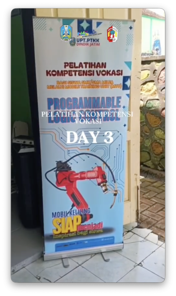 Pelaksanaan Pelatihan Kompetensi Vokasi bagi Siswa SMA/SMK (MILEA) melalui Mobile Training Unit (MTU) Tahun 2026 di SMKN 9 Malang memasuki hari ke-3 dengan kegiatan pembelajaran yang semakin mendalam dan aplikatif. Pada hari ketiga ini, peserta melanjutkan praktik pemrograman Programmable Logic Controller (PLC) dengan fokus pada pengembangan rangkaian kontrol yang lebih kompleks. Setelah memahami dasar-dasar pemrograman […]