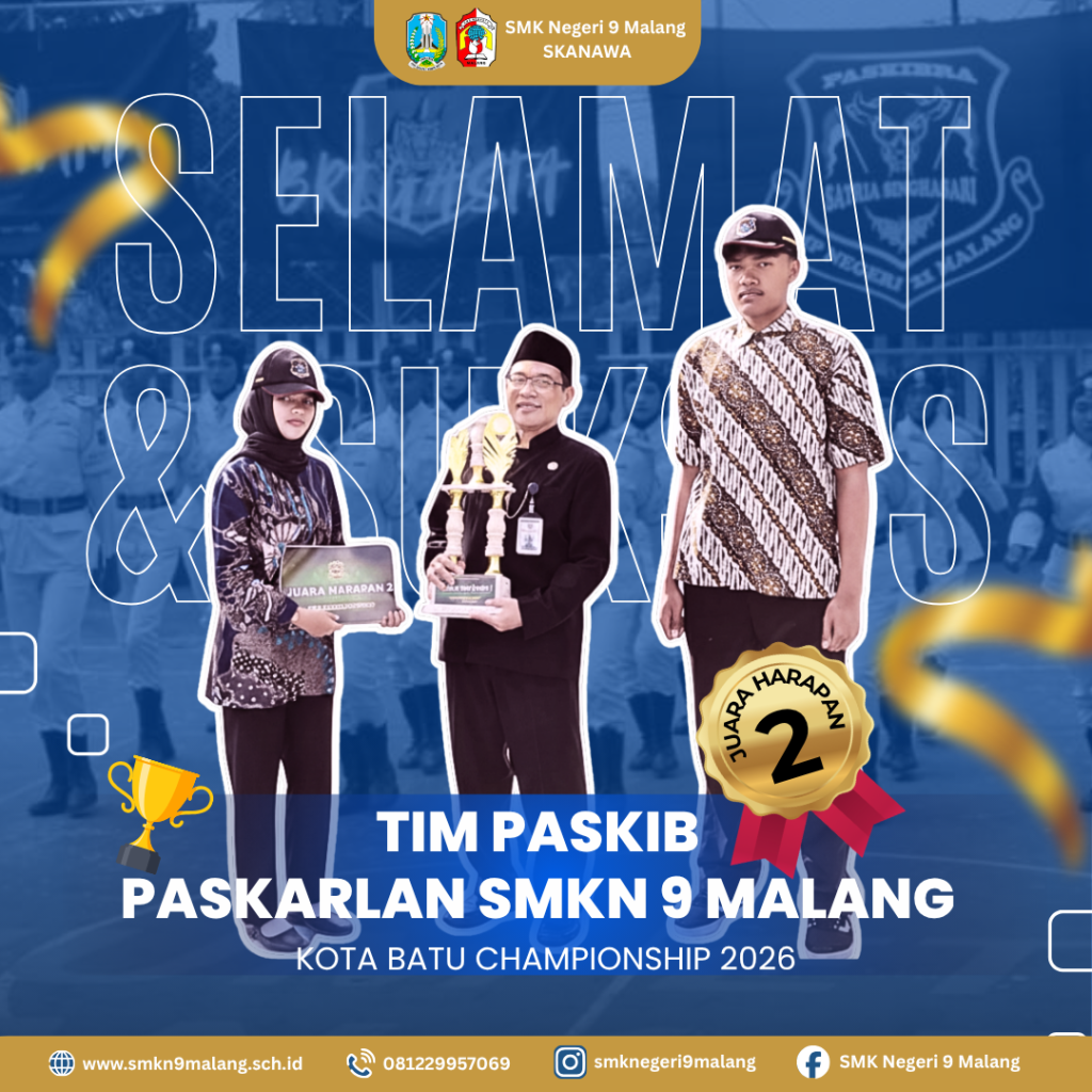 Prestasi membanggakan kembali ditorehkan oleh Tim Paskib PASKARLAN SMKN 9 Malang! Selamat dan apresiasi setinggi-tingginya atas keberhasilan meraih Juara Harapan 2 dalam ajang Kota Batu Championship 2026. Pencapaian ini tidak diraih secara instan, melainkan melalui proses panjang yang penuh latihan, kedisiplinan, kerja sama tim, serta semangat juang yang luar biasa dari seluruh anggota. Keberhasilan ini […]